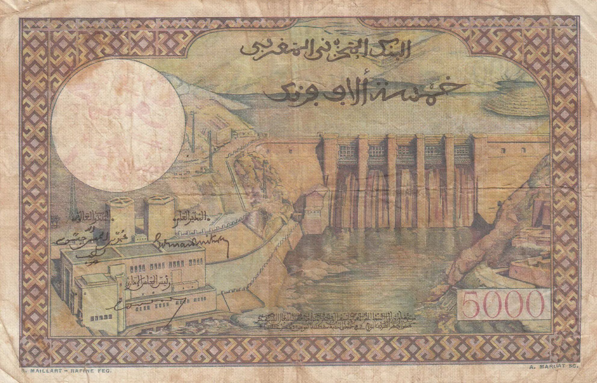 Accueil > Archivage > Maroc 50 Dirhams sur 5000 Francs surchargé 02-04-1953 - Série X.619 - TB - P.51