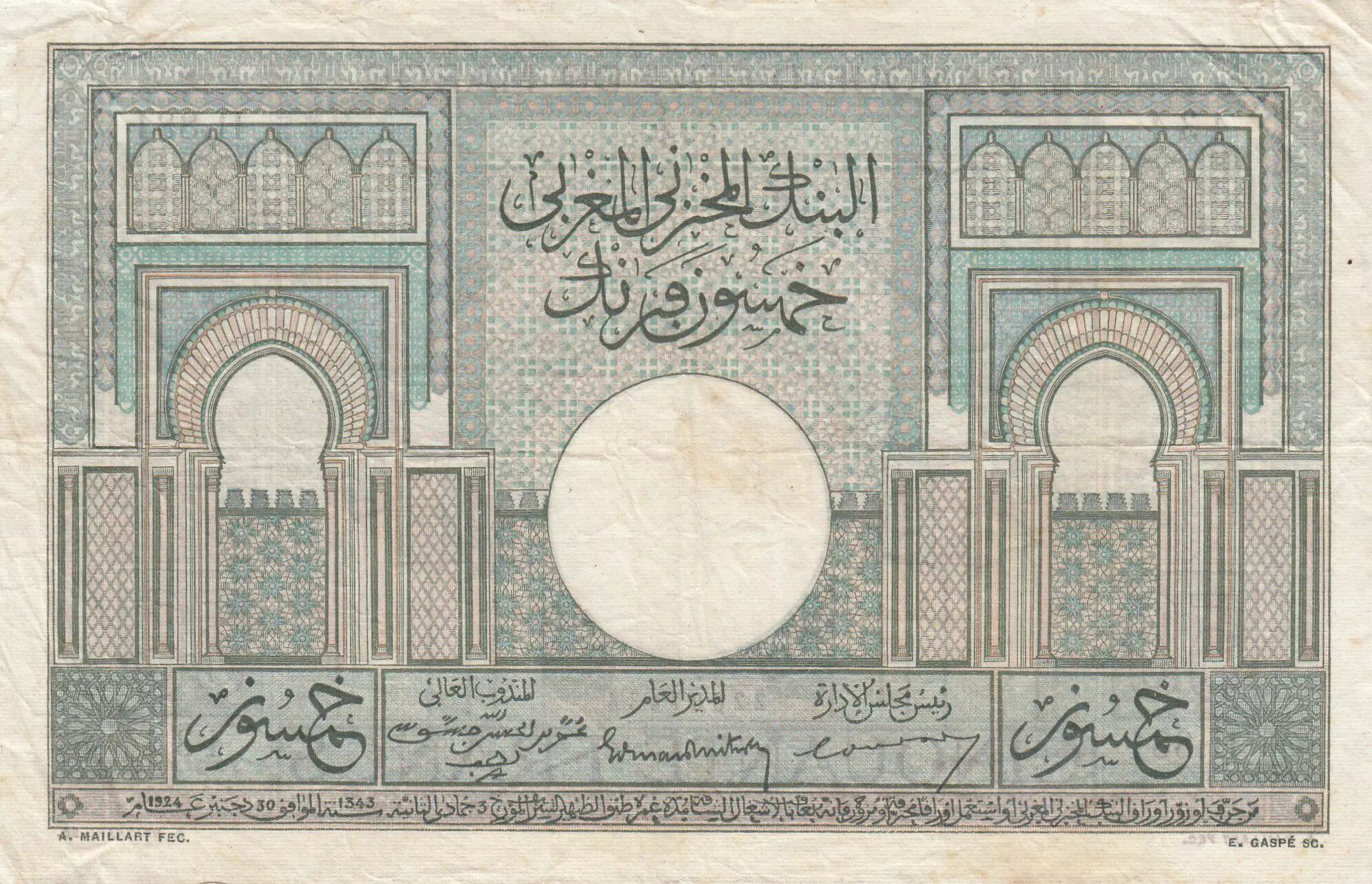 Accueil > Archivage > Maroc 50 Francs 01-03-1945 - Grand Format - - TTB - Série H.881 - P.21