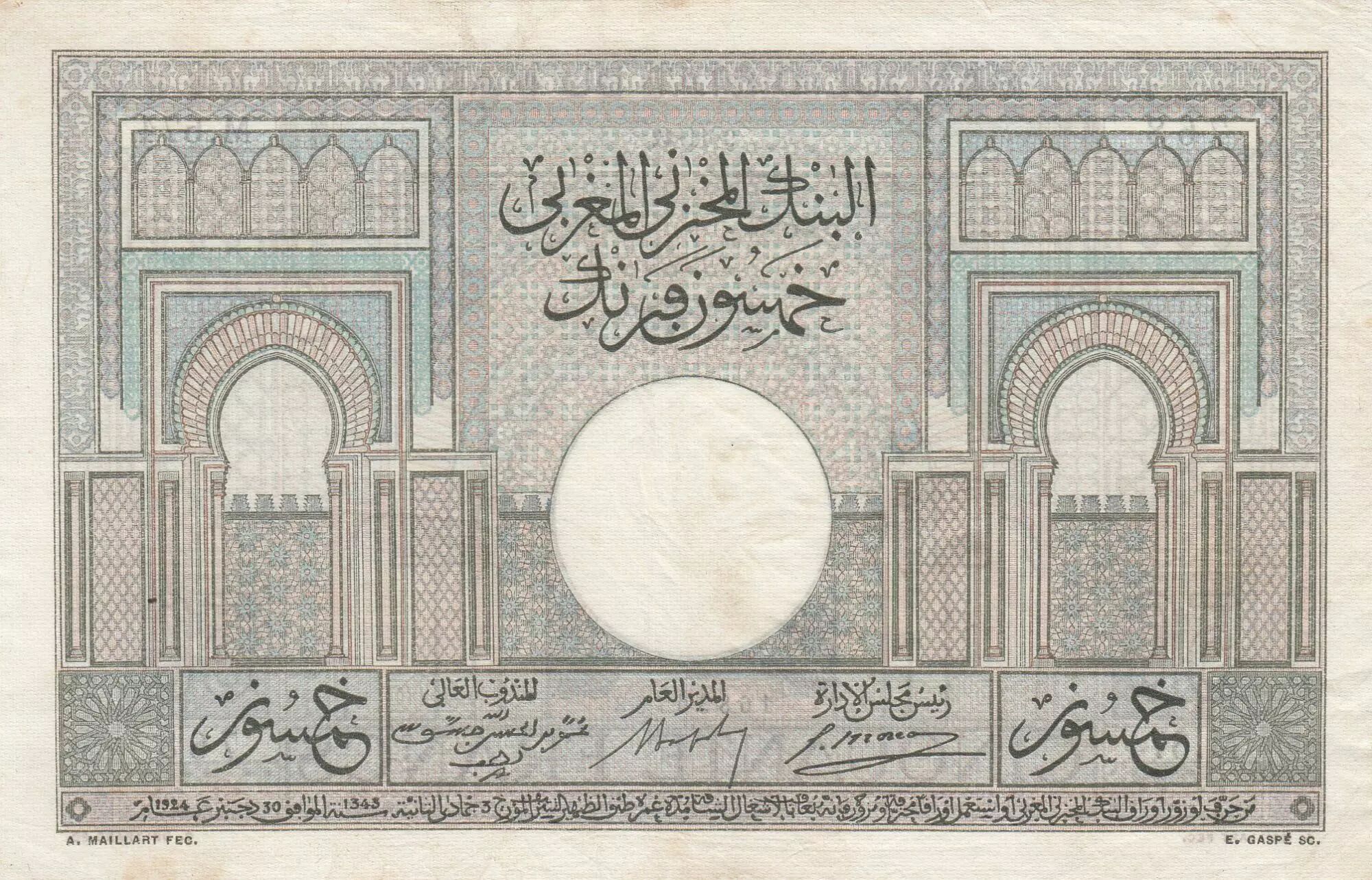 Accueil > Archivage > Maroc 50 Francs 09-11-1942 - TTB - Série M.674 - P.21
