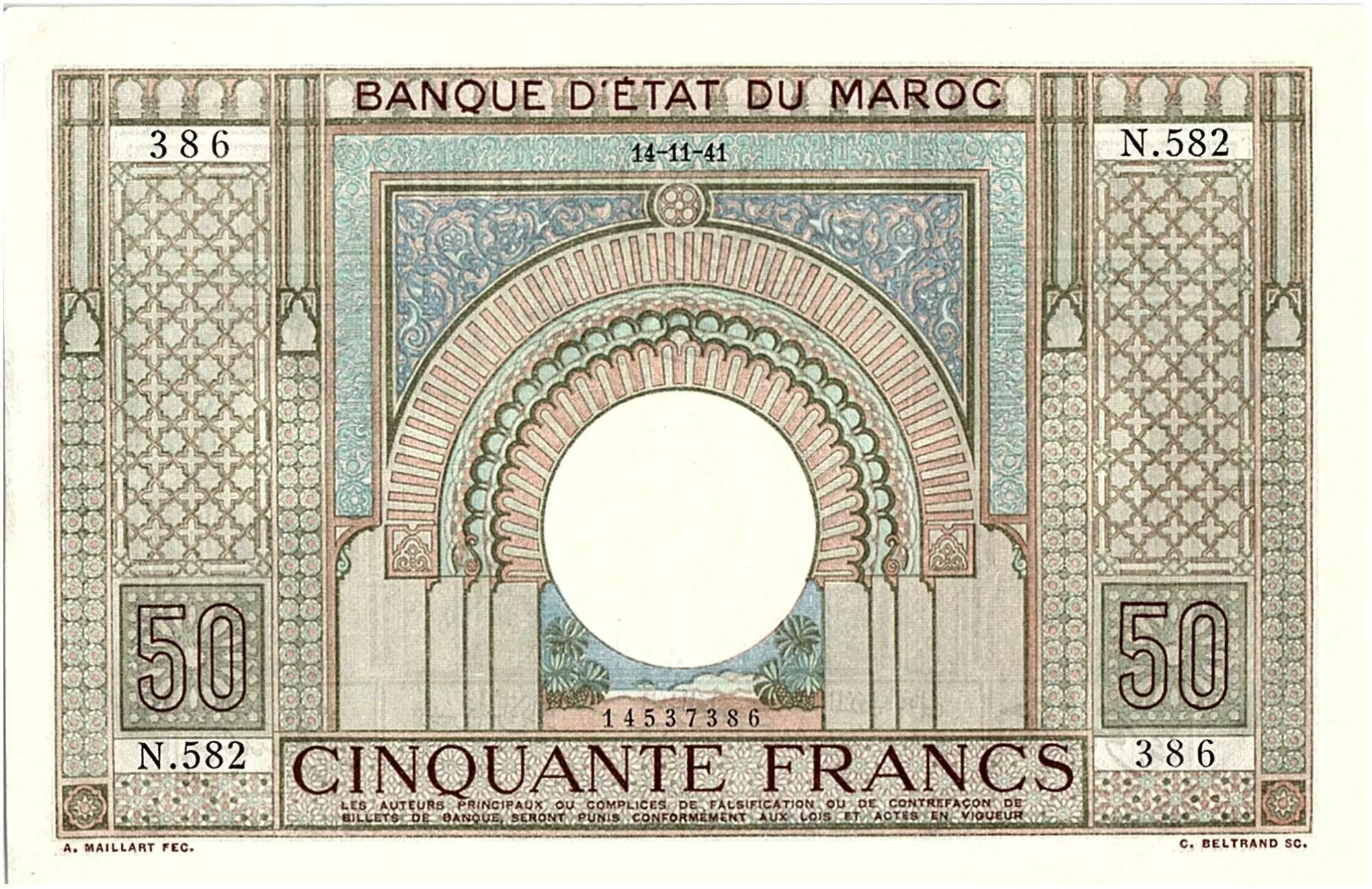 Billet Maroc 50 Francs 14-11-1941 - SUP + - Série N.582- P.21