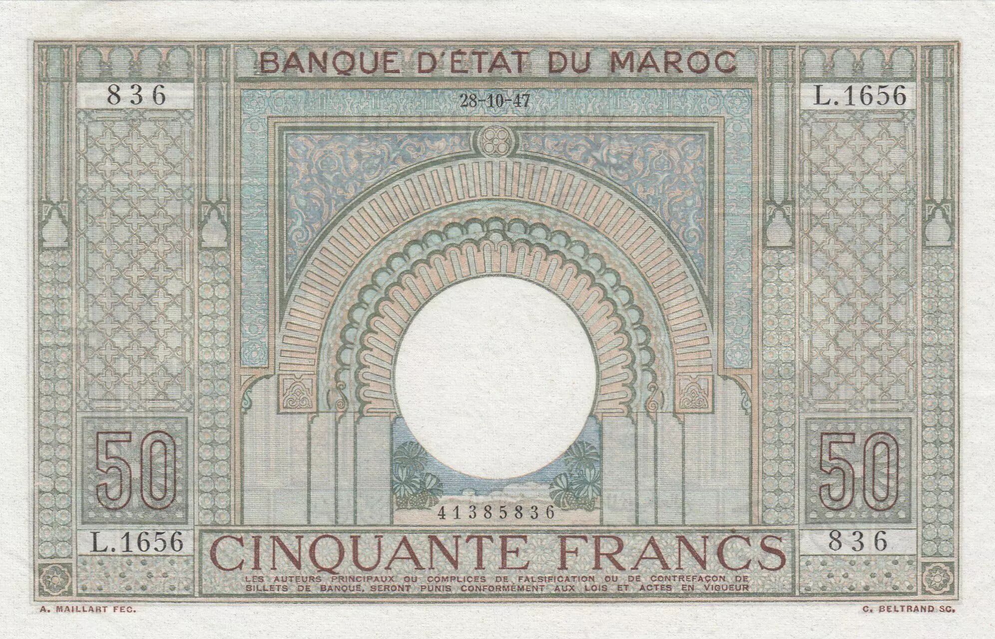 Billet Maroc 50 Francs 28-10-1947 - Grand Format - SUP - Série L.1656 - P.21