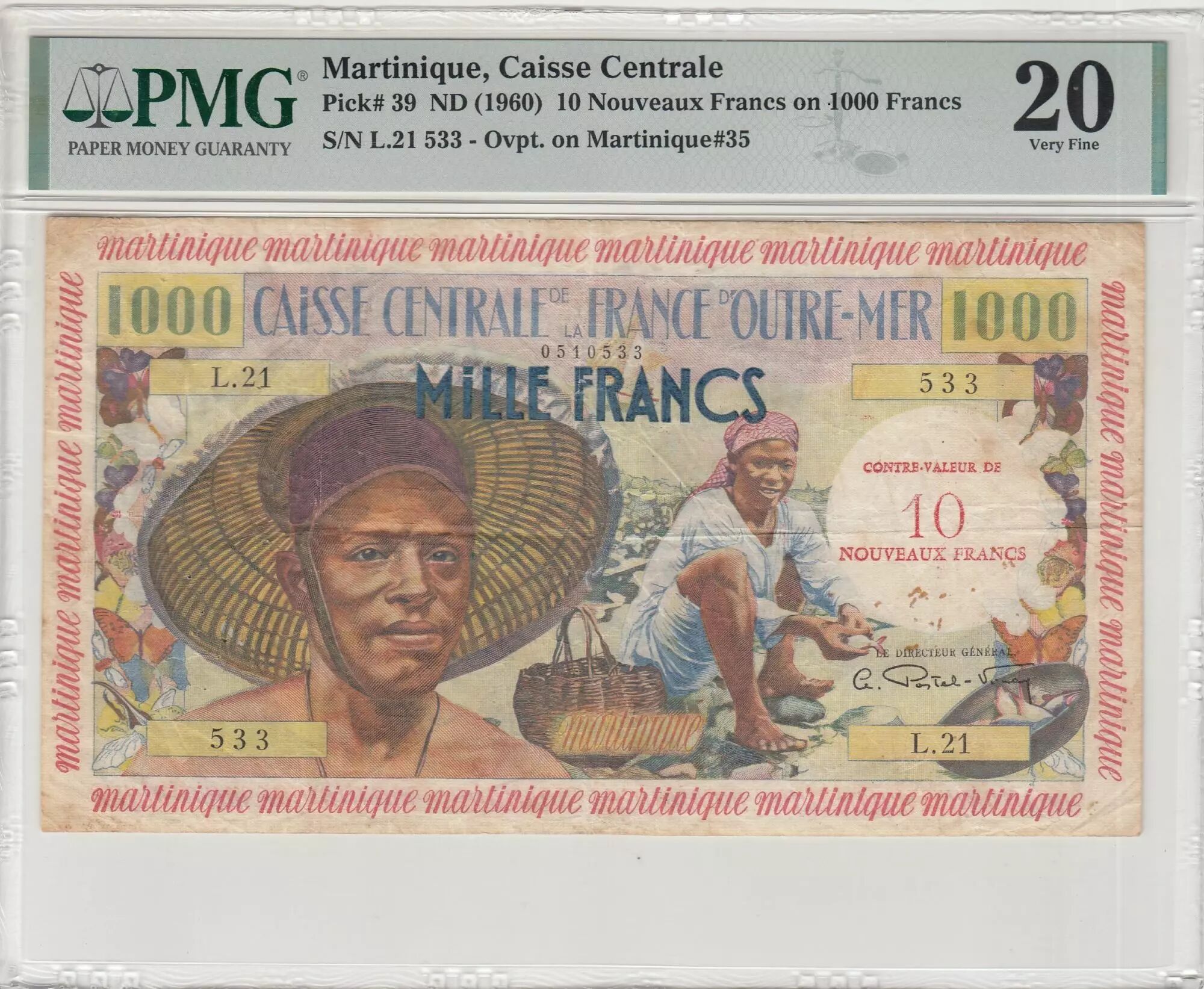 Billet Martinique 10 NF/1000 Francs - Pêcheur - 1960 - Série L.21 - PMG 20