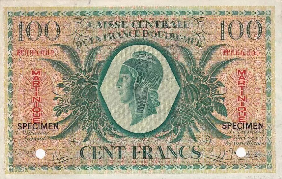 Accueil > Archivage > archivage-Billets du Monde > Martinique 100 Francs - Marianne - 1944 - P.25 - Spécimen