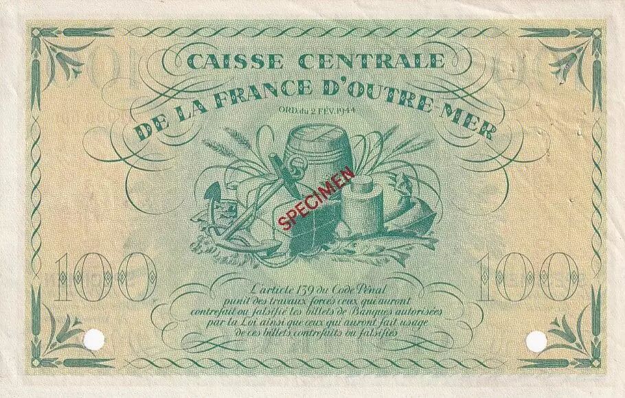 Billet Martinique 100 Francs - Marianne - 1944 - P.25 - Spécimen
