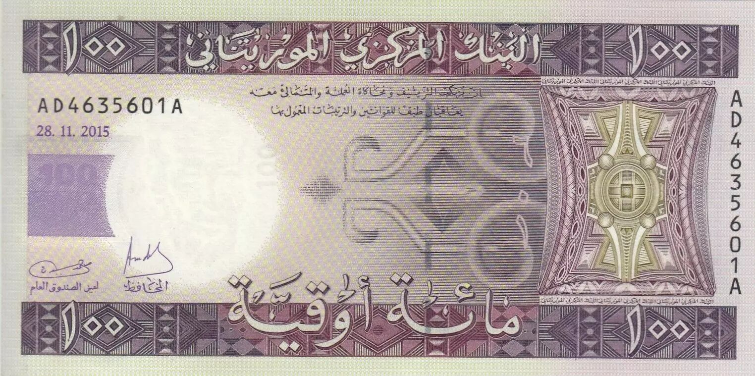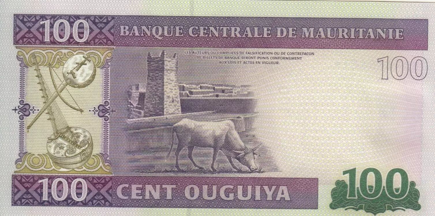 Home > World Banknotes > African Banknotes > Mauritania > Mauritania 100 Ouguiya - Musical instruments - Cow - 28-11-2015 - Series AD