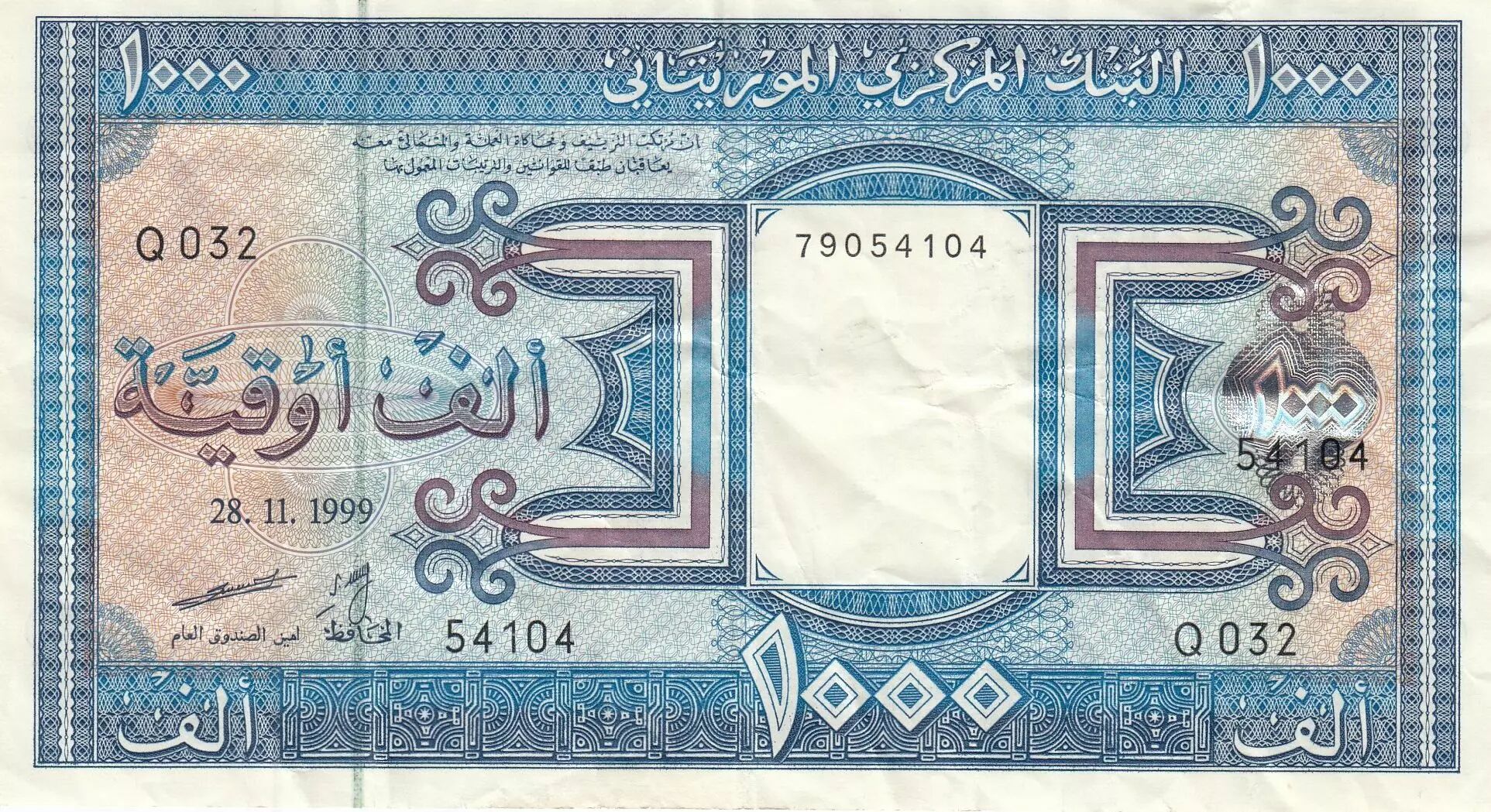 Banknote Mauritania 1000 Ouguiya - Camel and fish - 28-11-1999