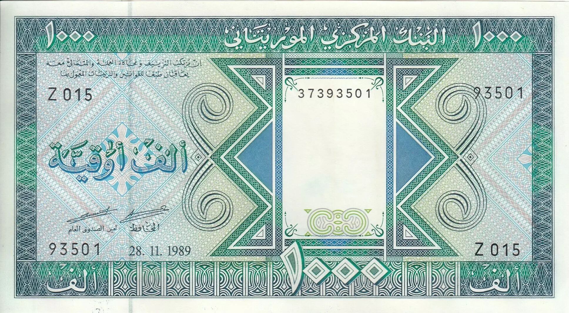 Banknote Mauritania 1000 Ouguiya - Dromedary and fish - 28-11-1989 - Serial Z.015 - PROMO