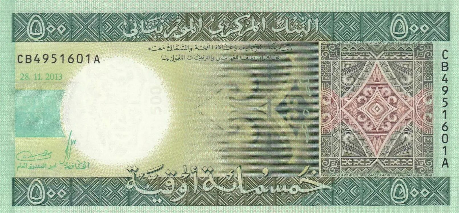 Banknote Mauritania 500 Ouguiya - Farmers - Factory - 28-11-2013 - Serial CB