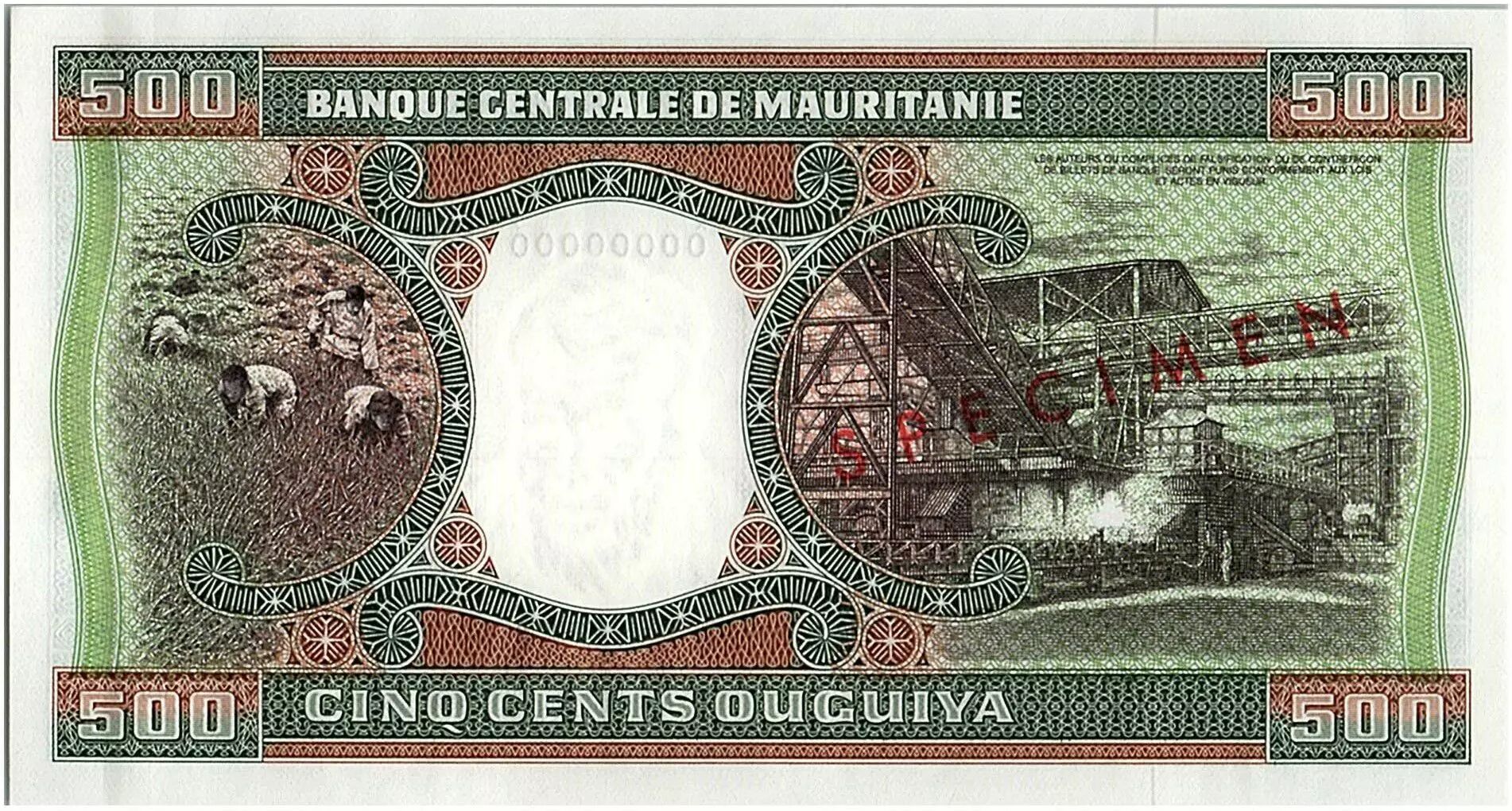 Banknote Mauritania 500 Ouguiya - Mine - Farmers - 1979 Specimen
