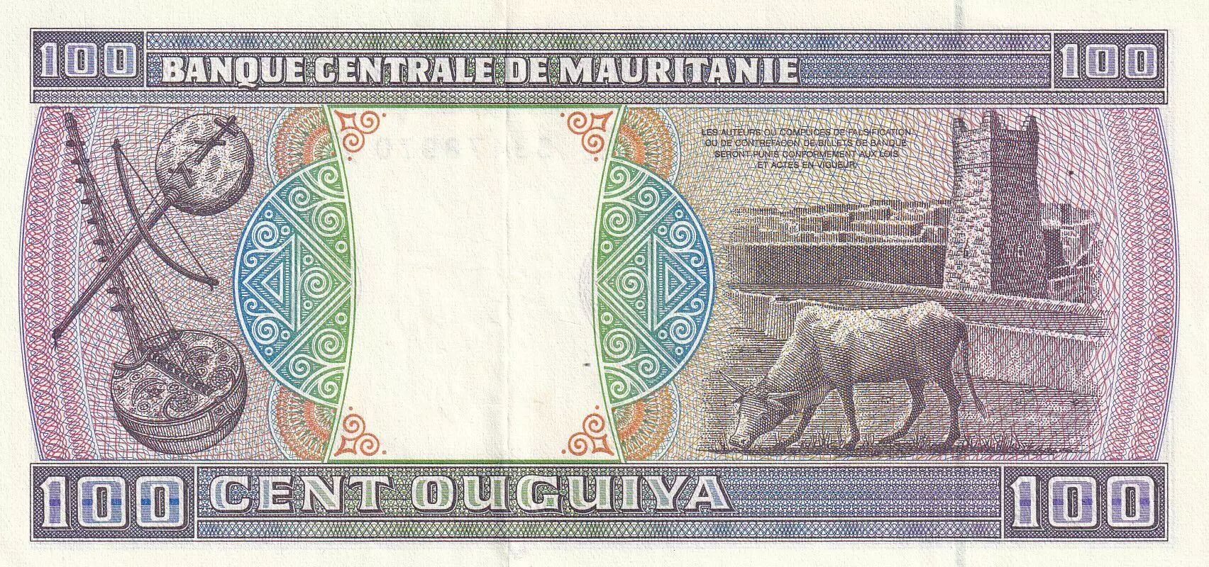 Accueil > Archivage > Mauritanie 100 Ouguiya - Village - Vache - 1999 - P.4i