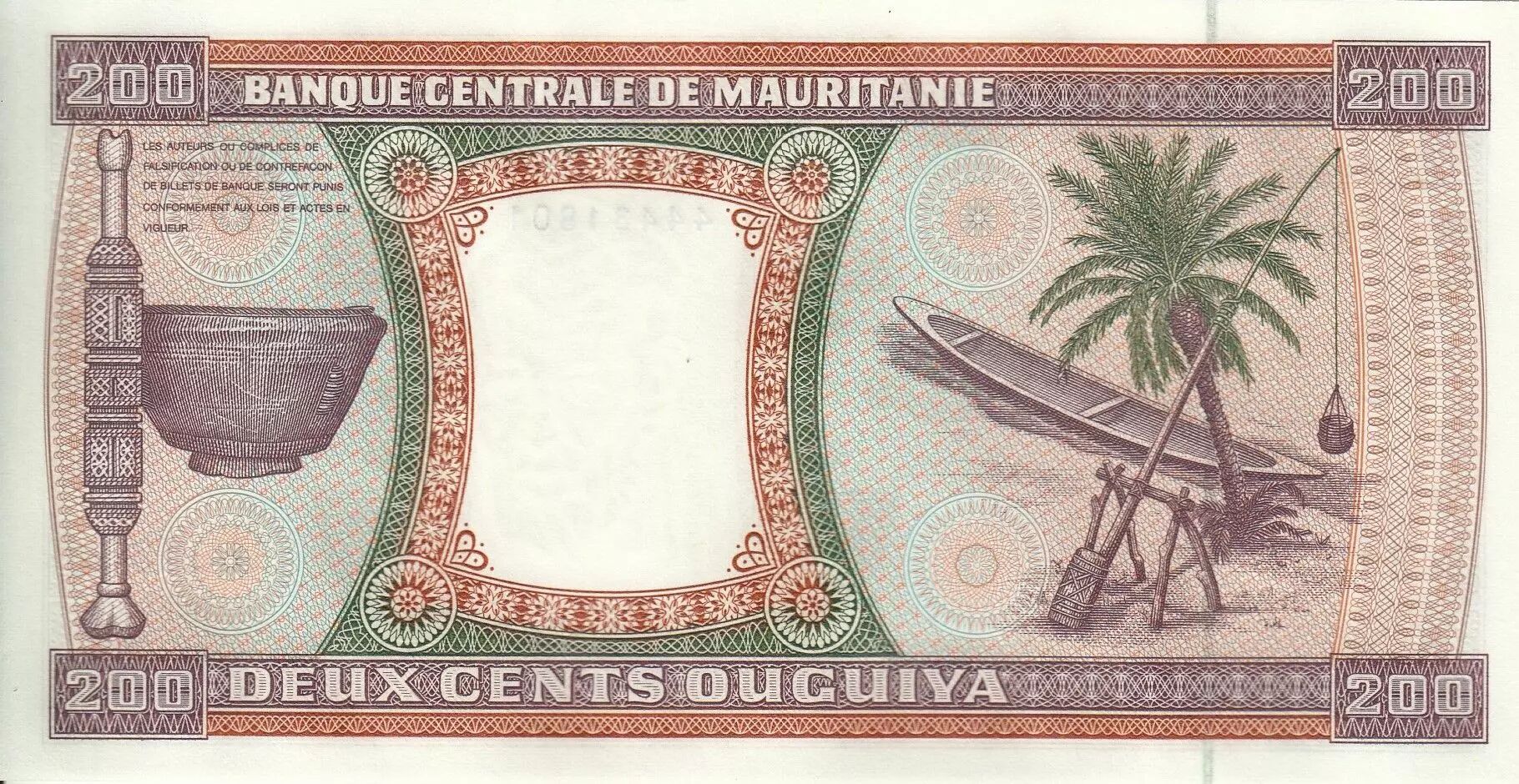 Accueil > Billets du Monde > Billets d'Afrique > Mauritanie > Mauritanie 200 Ouguiya - Bateau - Palmier - 28-11-2002 - Série U.018