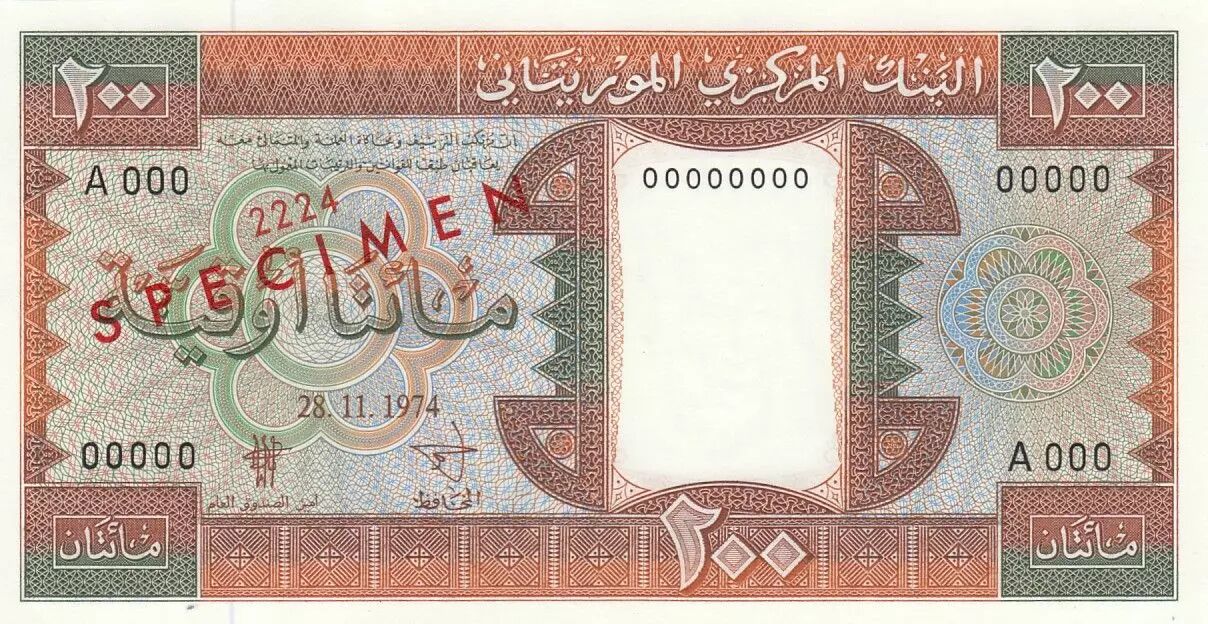 Accueil > Archivage > Mauritanie 200 Ouguiya - Bateau - Palmier - Artisanat - 1974 Spécimen