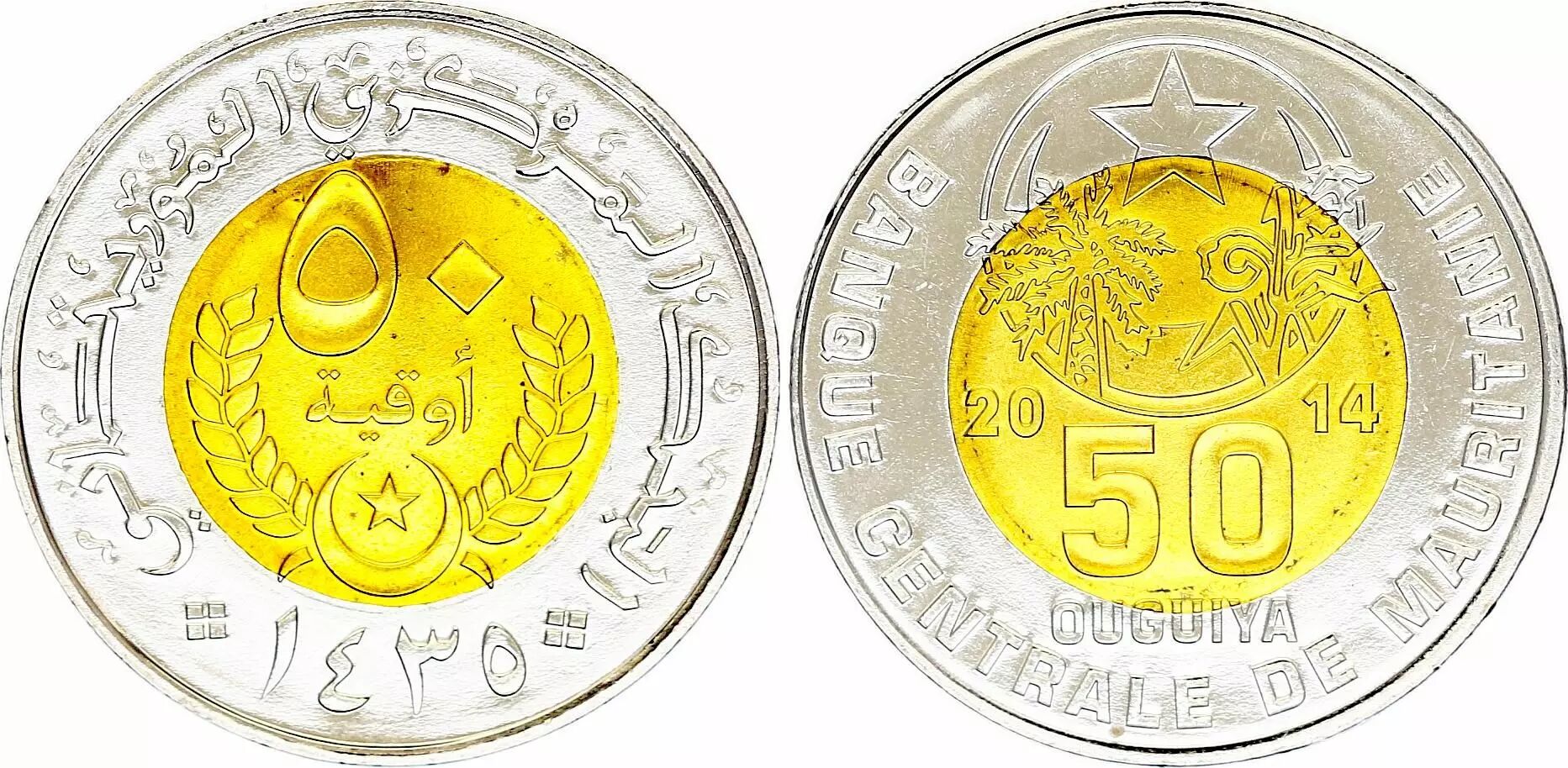 Pièce Mauritanie 50 Ouguiya - Armoiries - 1435 (2014) - Bimétal