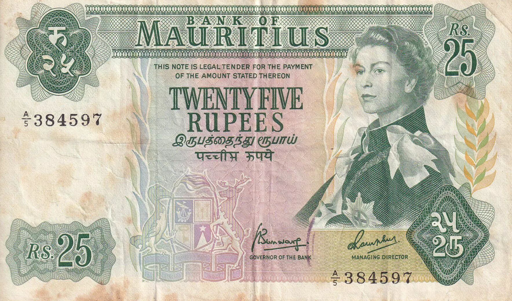 Home > > Mauritius 25 Rupees - Elizabeth II - Serial A.5 - VF - P.33b