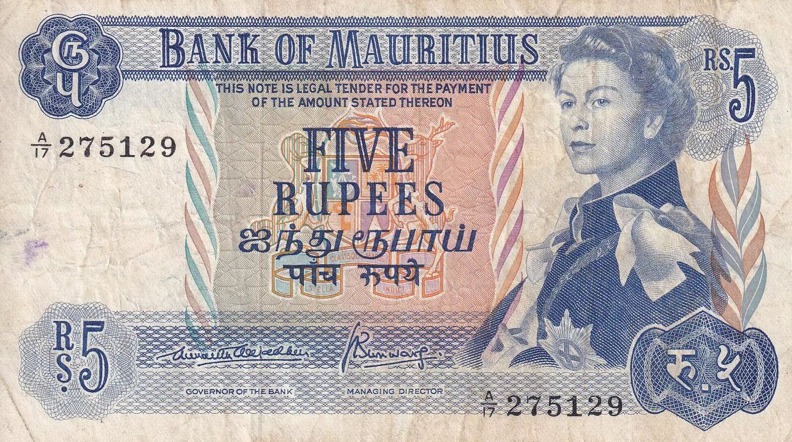 Home > > Mauritius 5 Rupees - Elizabeth II - Serial A.17 - P.30c