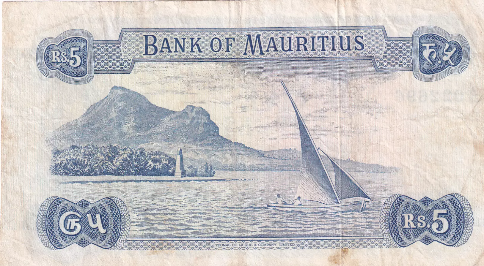 Banknote Mauritius 5 Rupees Elizabeth II - Serial A.48 - VF - P.30c