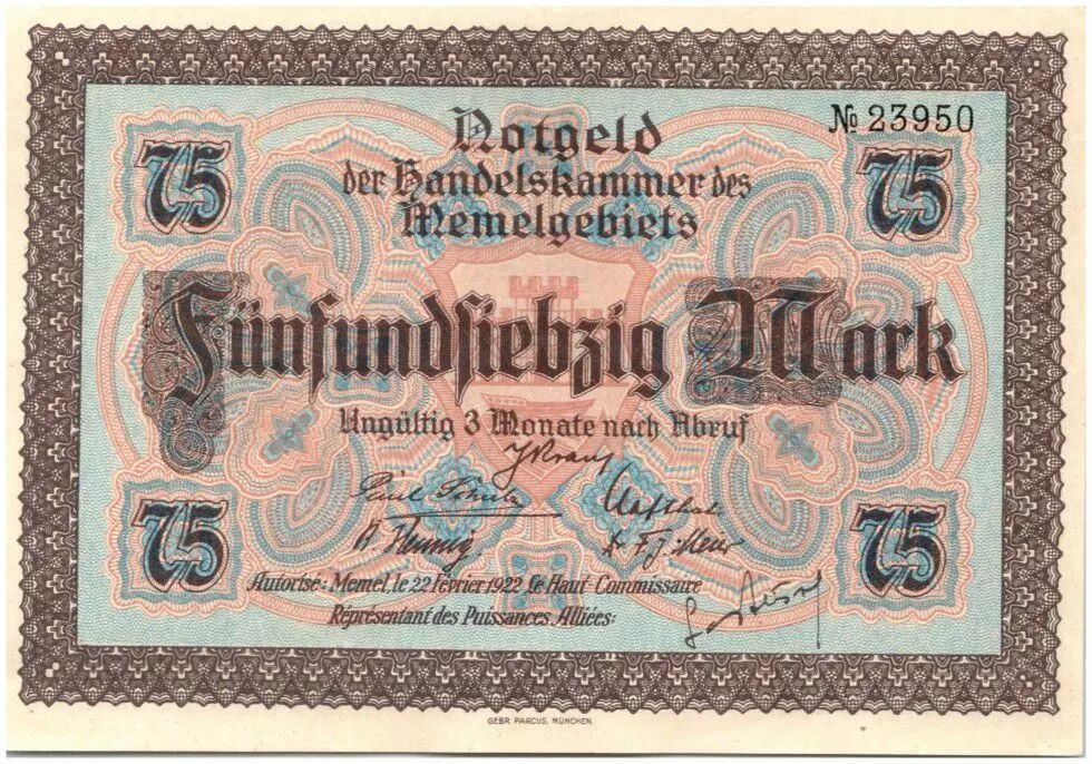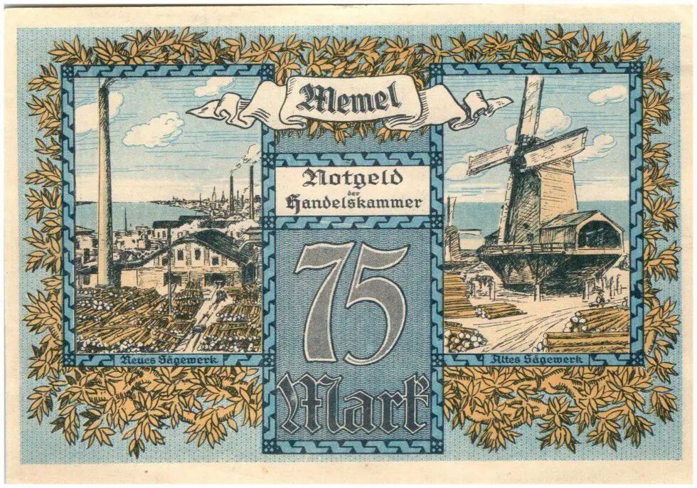 Banknote Memel 75 Mark New and old sawmills - 1922