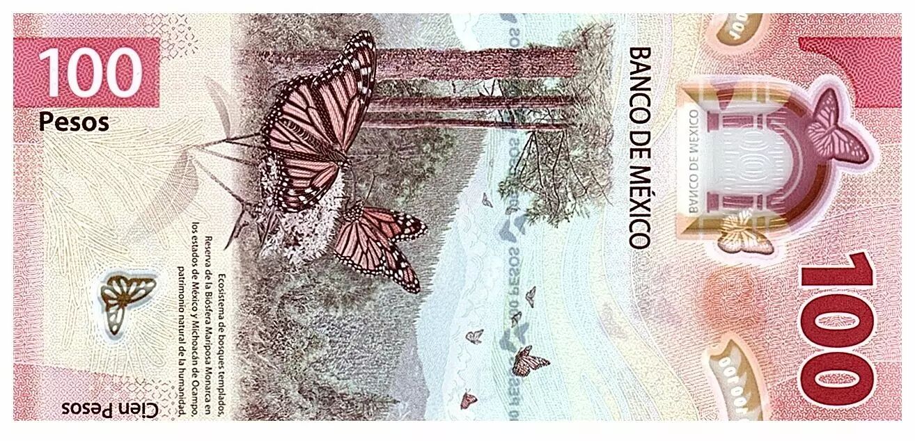 Banknote Mexico 100 Pesos, Juana de Asbaje - Butterfly - Polymer - 2022 - UNC