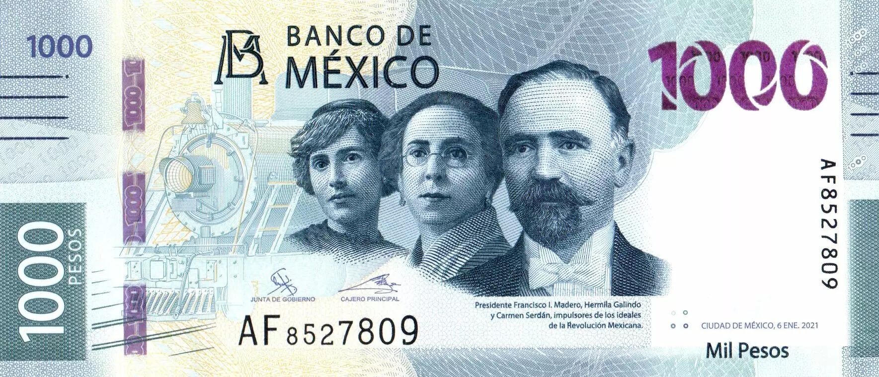 Home > > Mexico 1000 Pesos - Francisco I. Madero, Hermila Galindo y Carmen Serdán. - Jaguar - 2021 - UNC - P.NEW