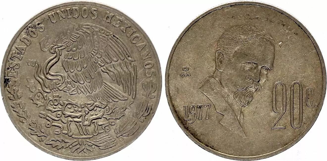 Home > World Coins > Currencies of the Americas > Mexico > Mexico 20 Centavos Francisco Ignacio Madero Gonzalez - 1975/1982