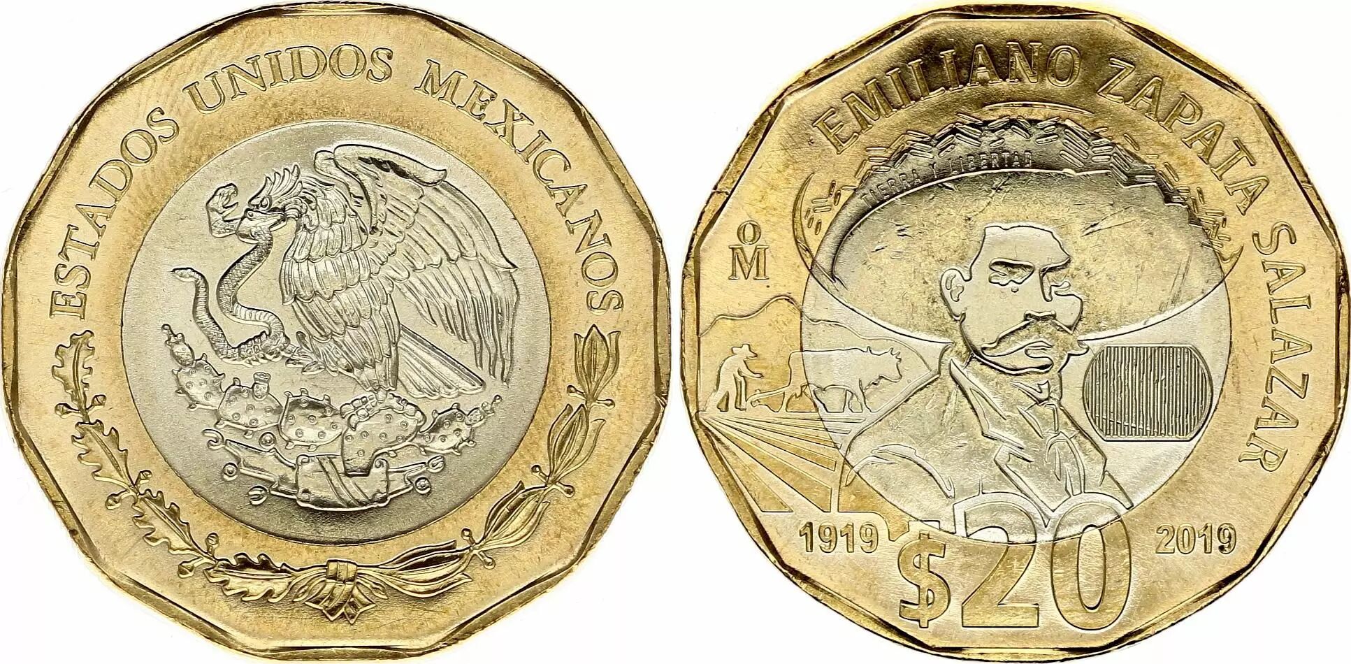 Home > World Coins > Currencies of the Americas > Mexico > Mexico 20 Pesos - Bimetalic - Emiliano Zapata Salazar - 2019 - AU - P.NEW