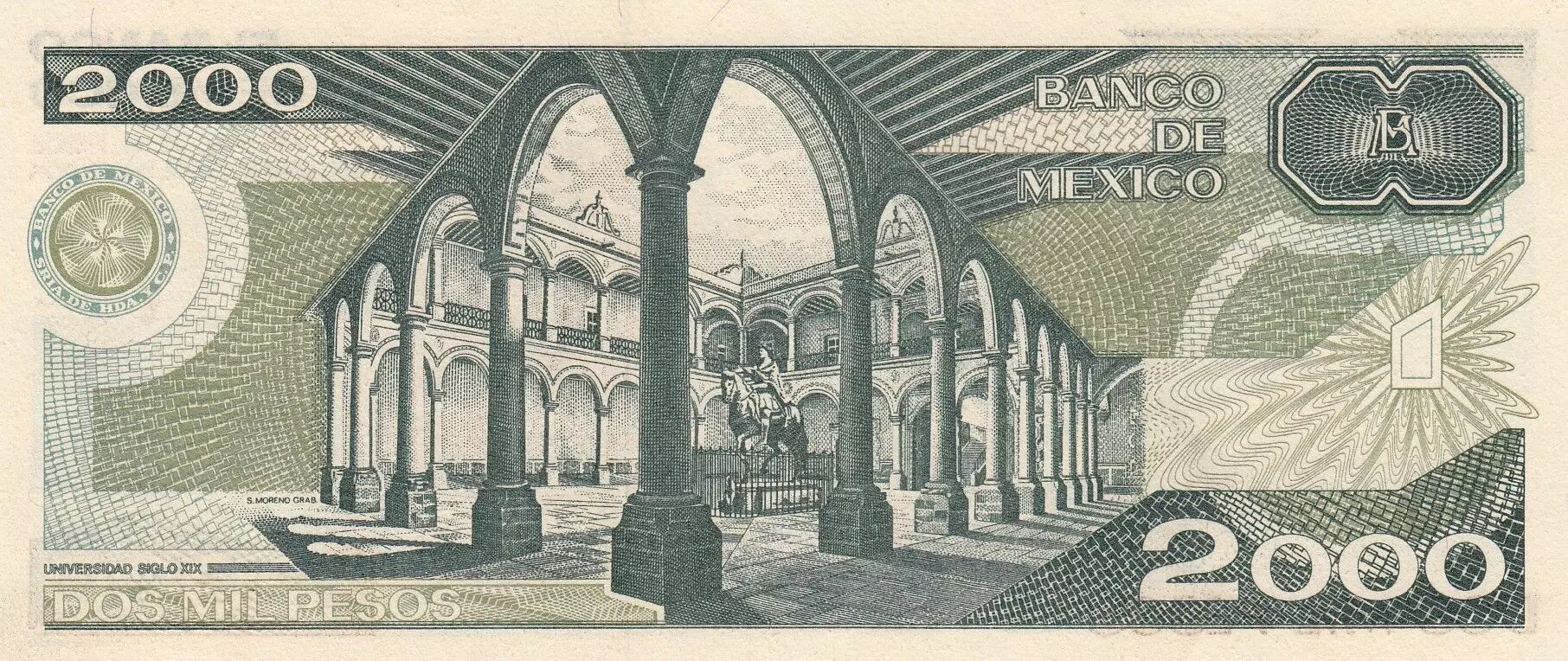 This 2000-peso banknote is a testament to Mexico's monetary history at the end of the 20th century. It reflects the values and symbols important to the nation, while incorporating advanced security features to combat counterfeiting.