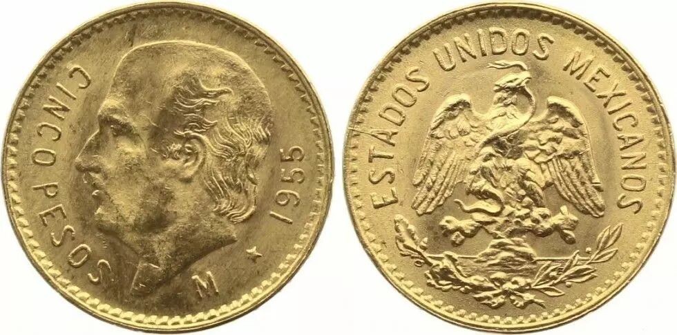 Coin Mexico 5 Pesos Miguel Hidalgo y Costilla - National arms 1955 - Gold