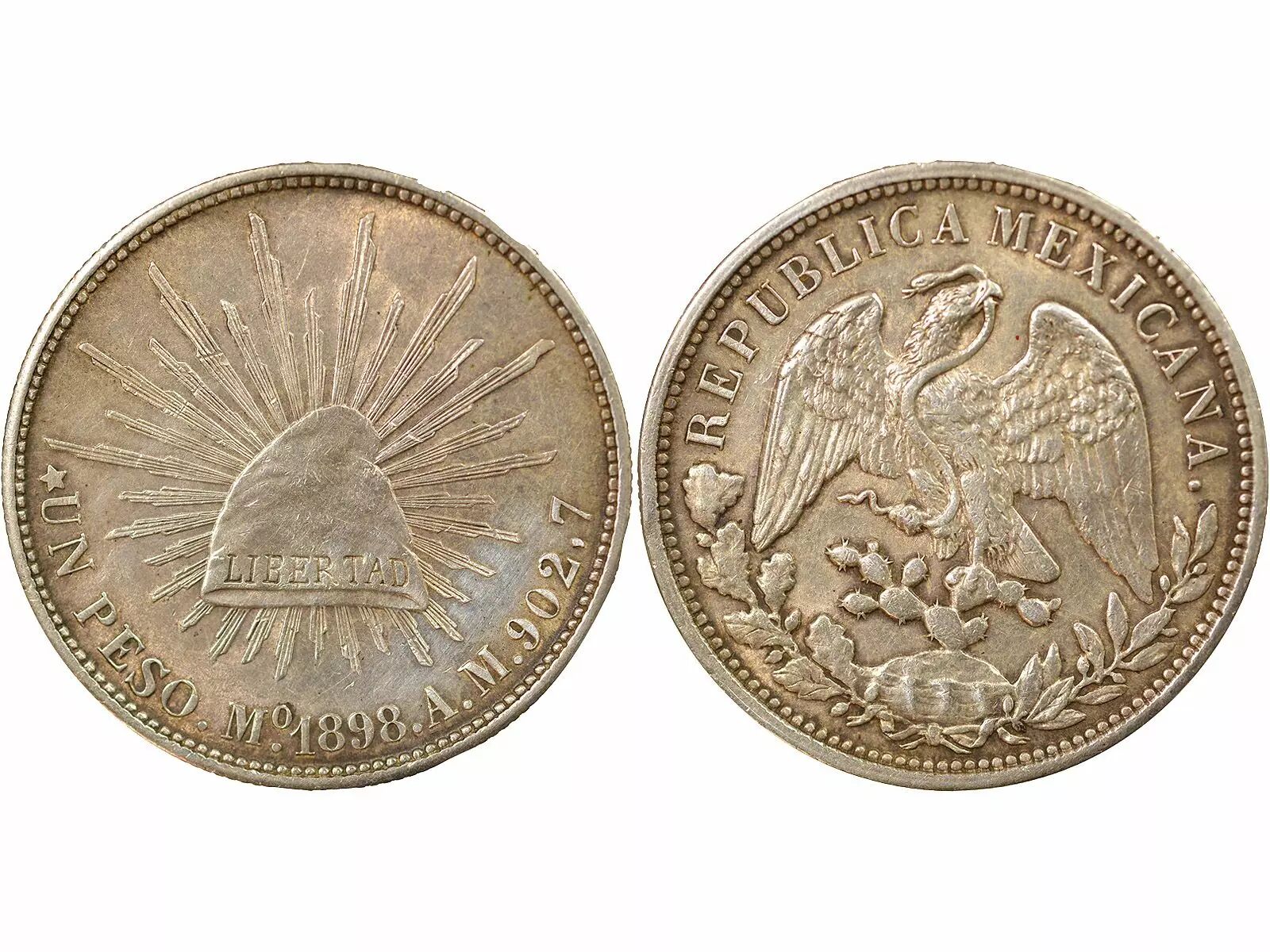 Home > World Coins > Currencies of the Americas > Mexico > Mexico Silver Peso, 1949 restrike - 1898 Mo