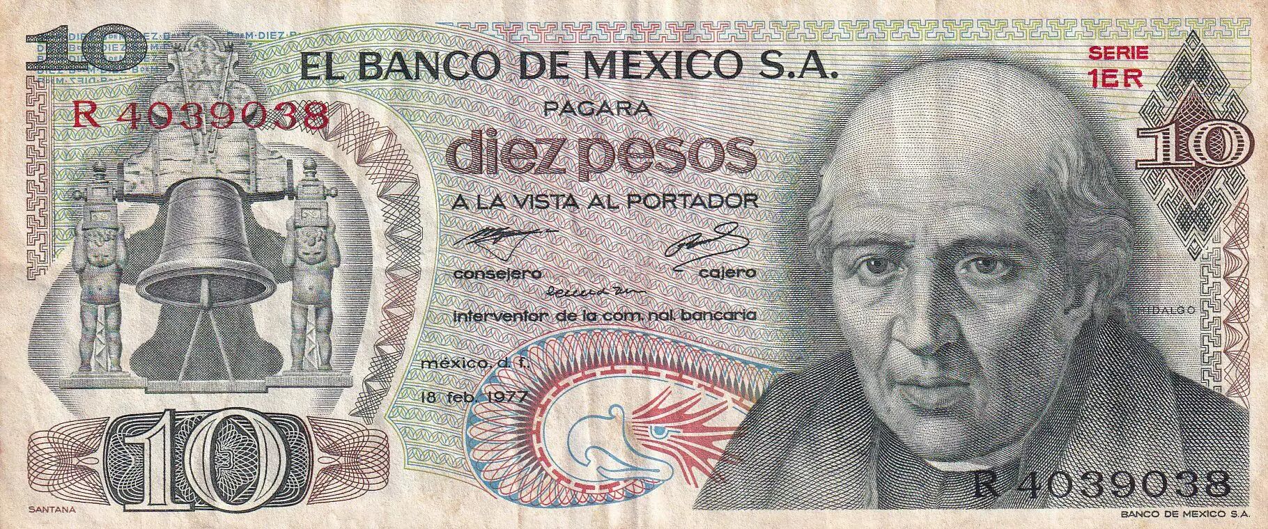 Billet Mexique 10 Pesos - Hidalgo - 1977 - Série 1ER - P.63i
