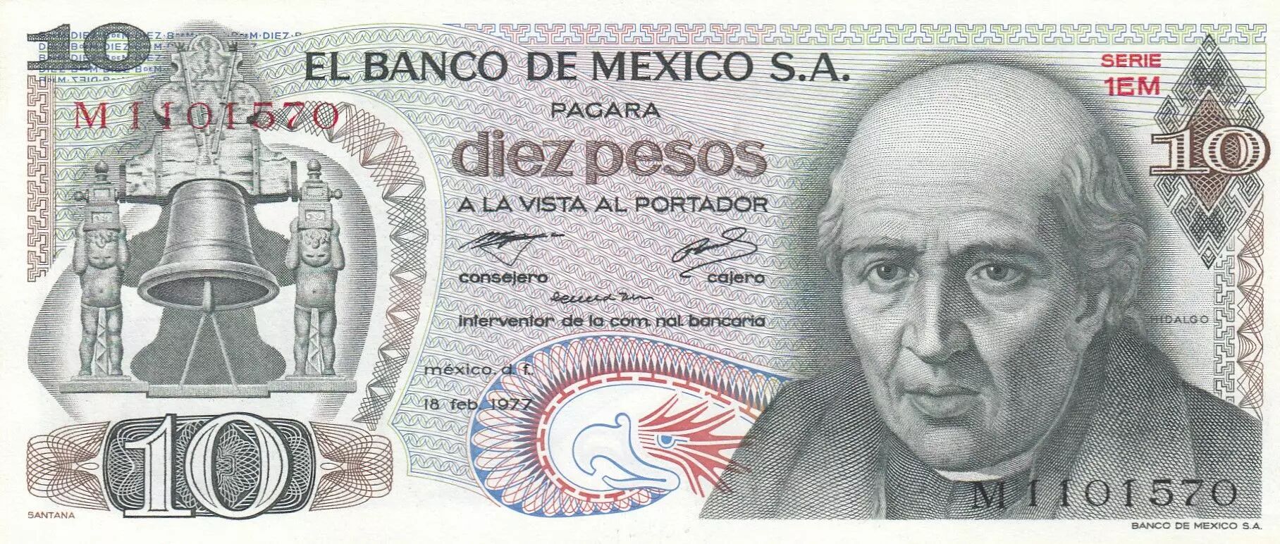 Billet Mexique 10 Pesos - Miguel Hidalgo y castilla - 18-02-1977 - Série EM