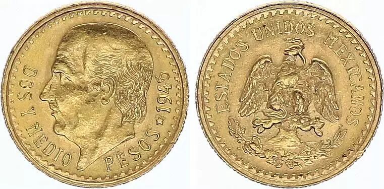 Pièce Mexique 2 1/2 Pesos Miguel Hidalgo y Costilla OR 1945