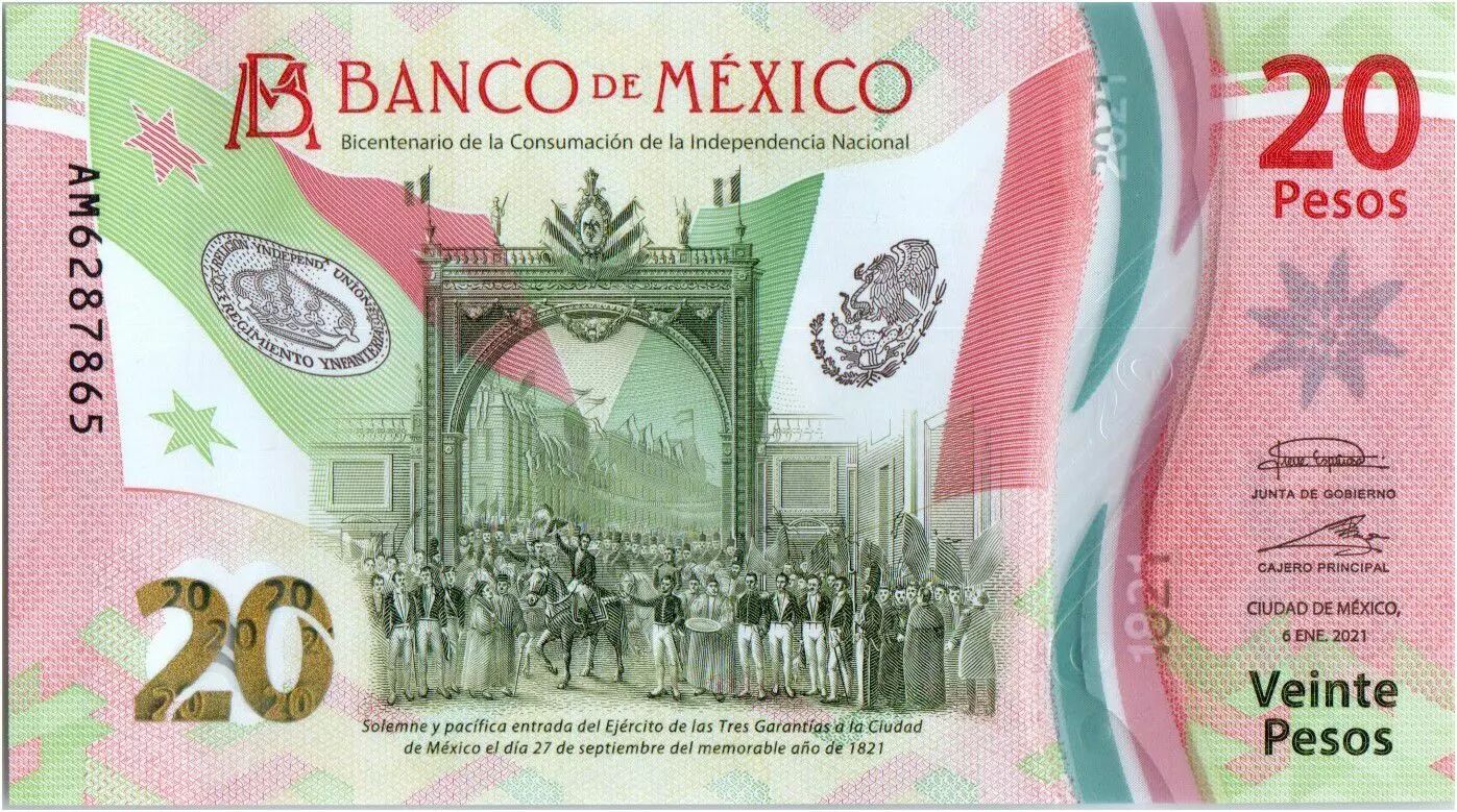 Accueil > Billets du Monde > Billets d'Amérique > Mexique > Mexique 20 Pesos - Bicentenaire de l'indépendance nationale - Polymère - 2021 - NEUF - P.NEW