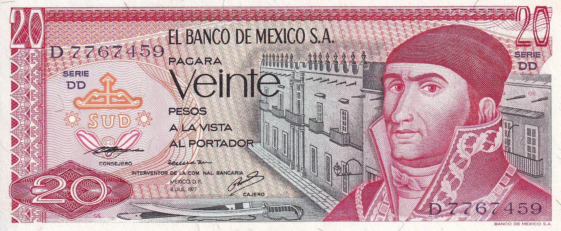 Accueil > Archivage > Mexique 20 Pesos - J. Morelos - 1977 - Série DD - P.77