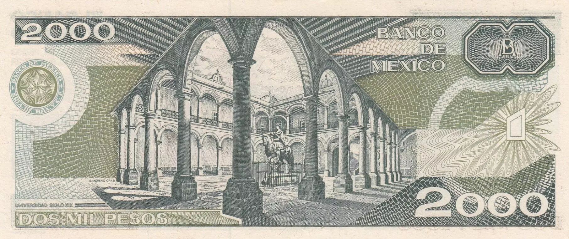 Le billet commémore probablement l'université ou met en évidence l'importance de l'éducation et de la culture au Mexique. Il est possible que le billet ait été émis pour honorer le rôle de Justo Sierra dans l'établissement ou le développement de l'institution universitaire. Le graphisme du billet comprend des éléments visuels associés à l'université, tels que des bâtiments universitaires, des symboles académiques ou des scènes de la vie étudiante. Les couleurs et le style général du billet reflètent l'esthétique de l'époque à laquelle il a été émis.