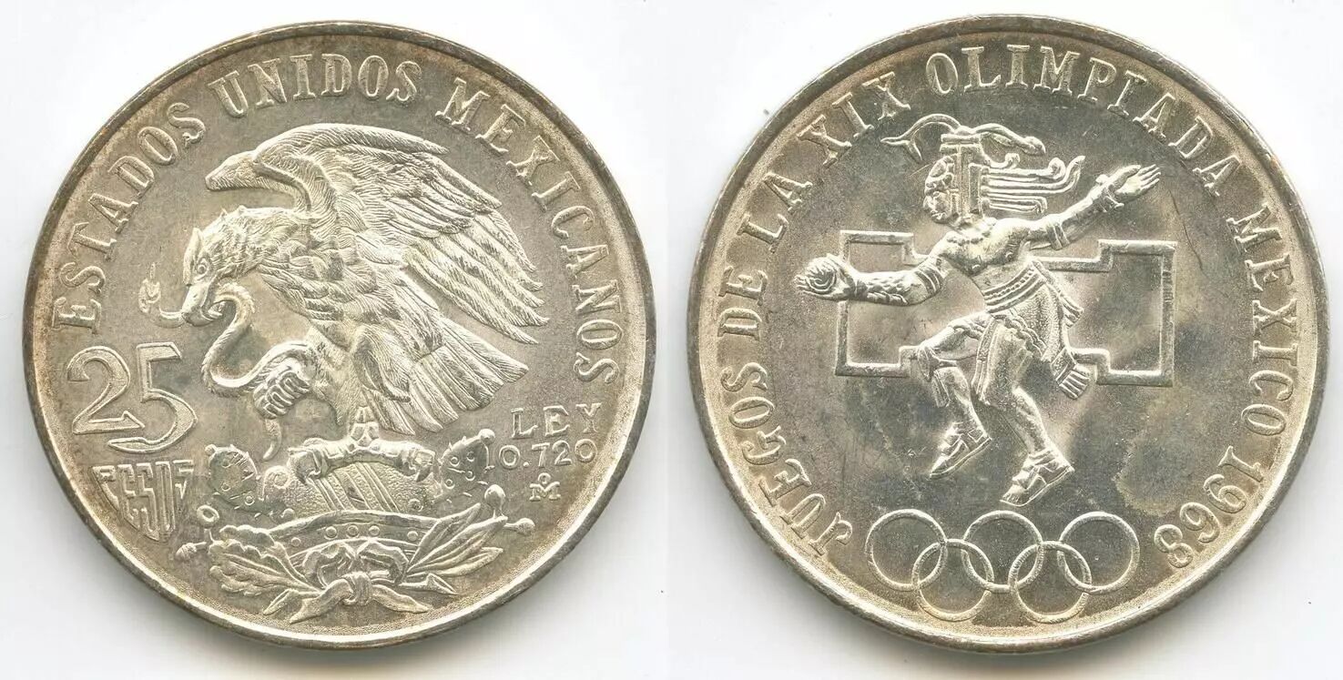 Accueil > > Mexique 25 Pesos, Jeux Olympiques, Emblème National - 1968
