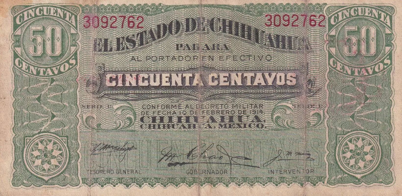 Accueil > Archivage > Mexique 50 Centavos - Estado de Chihuahua - 1914 - P.S528