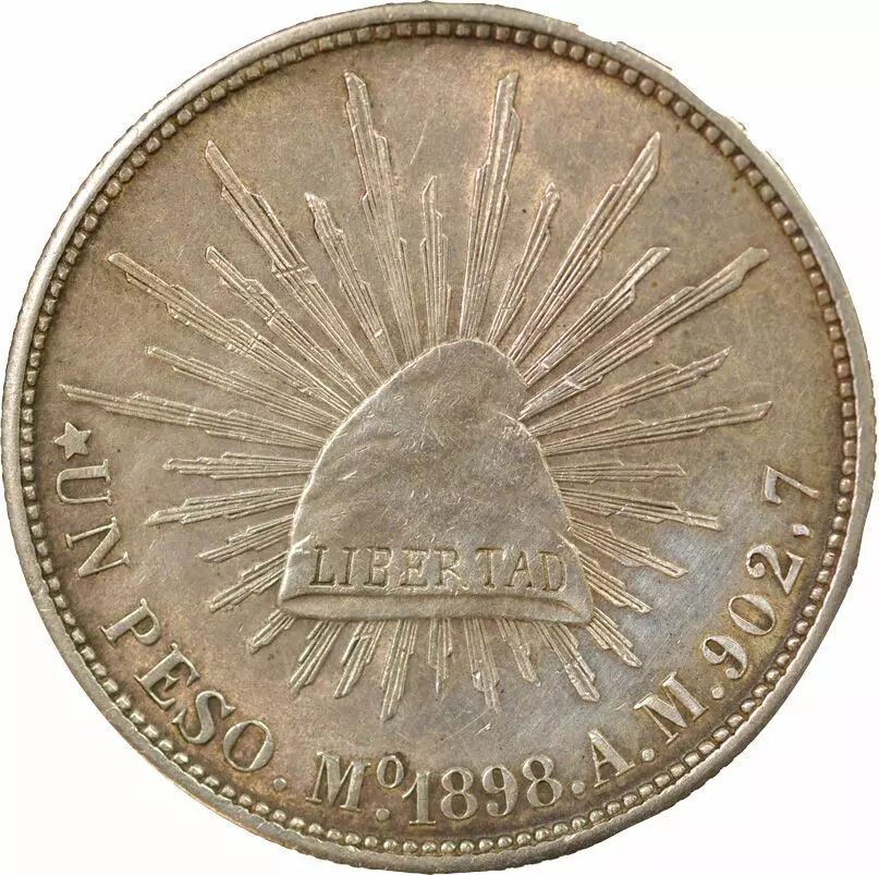 Pièce Mexique Peso Argent, refrappe de 1949 - 1898 Mo