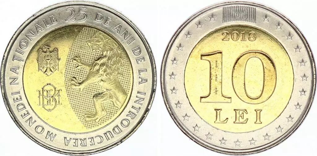 Home > World Coins > European Currencies > Moldova > Moldava 10 Lei 2018 - 25 years of National Currency - Bimetal