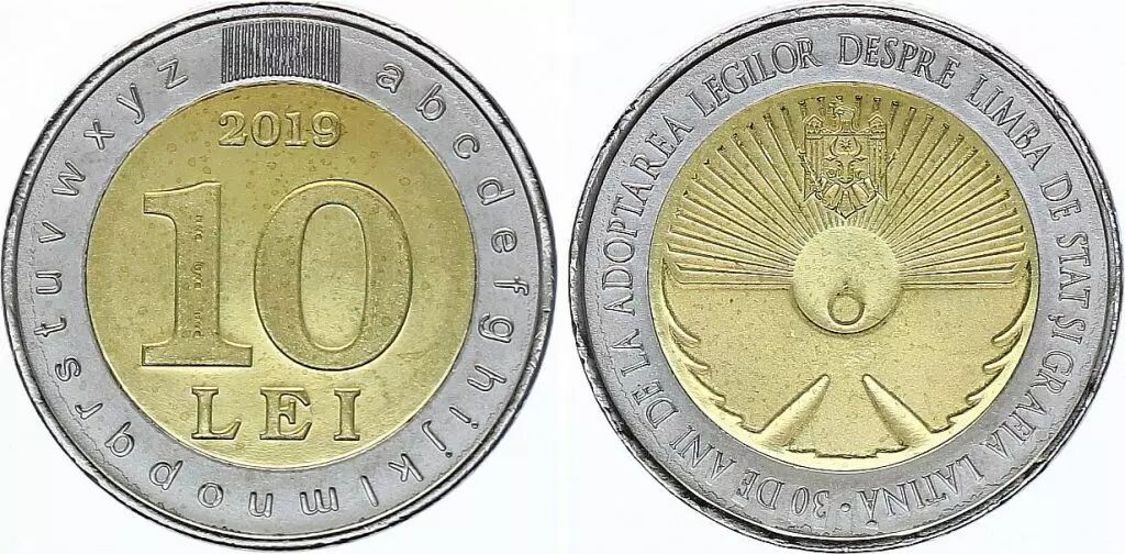 Home > > Moldava 10 Lei - National Language 2019 - Bimetal