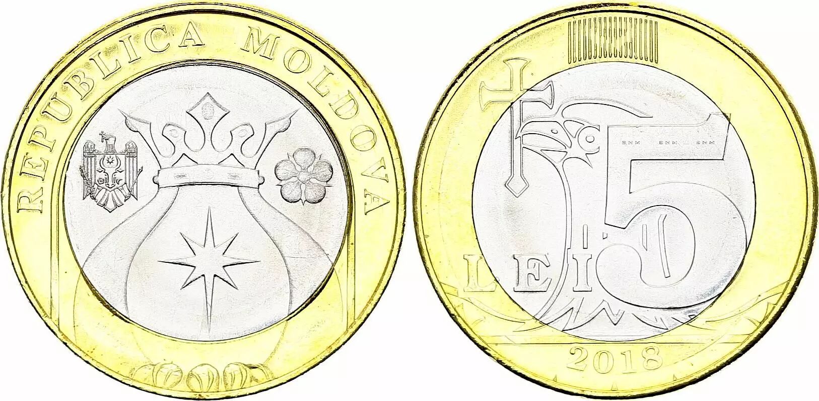 Home > World Coins > European Currencies > Moldova > Moldava 5 Lei 2018 - Bull's Head- Bimetal