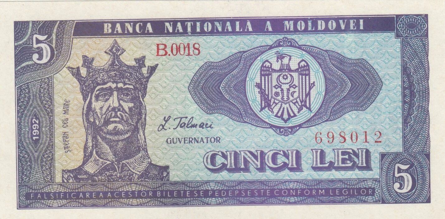 Le billet de 5 lei moldaves, émis en 1992, est un témoignage de l'histoire monétaire de la Moldavie. Ce billet fait partie d'une série émise après l'indépendance du pays.