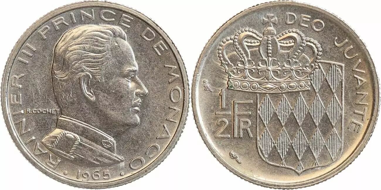 Pièce Monaco 1/2 Franc Rainier III - Armoiries - années 1965 à 1982