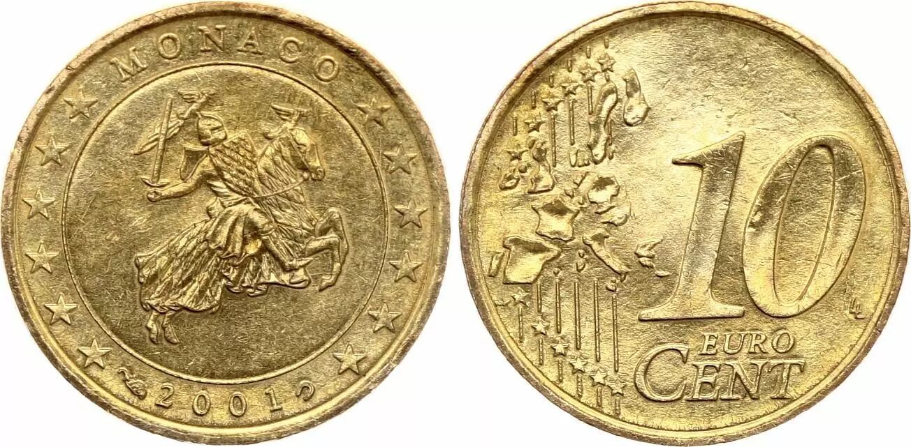 Home > > Monaco 10 Centimes d'Euro - Grimaldi Knight - 2001