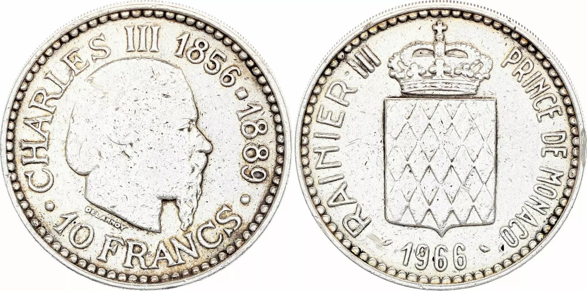 Pièce Monaco 10 Francs Charles III - 1966 - Argent