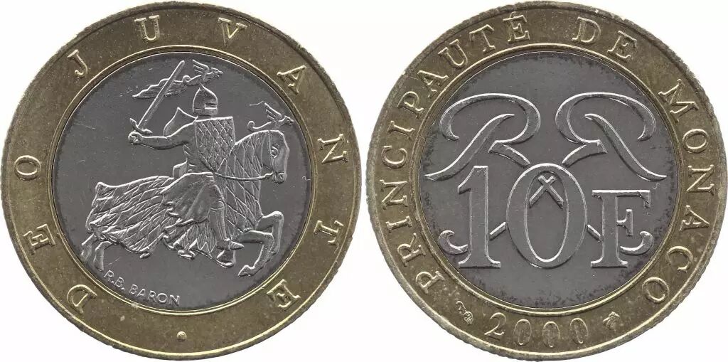 Pièce Monaco 10 Francs Chevalier - 1989 à 2000 - Bimétal