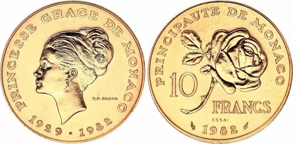 Home > World Coins > European Currencies > Monaco > Monaco 10 Francs Princesse Grace - 1982 pattern - UNC
