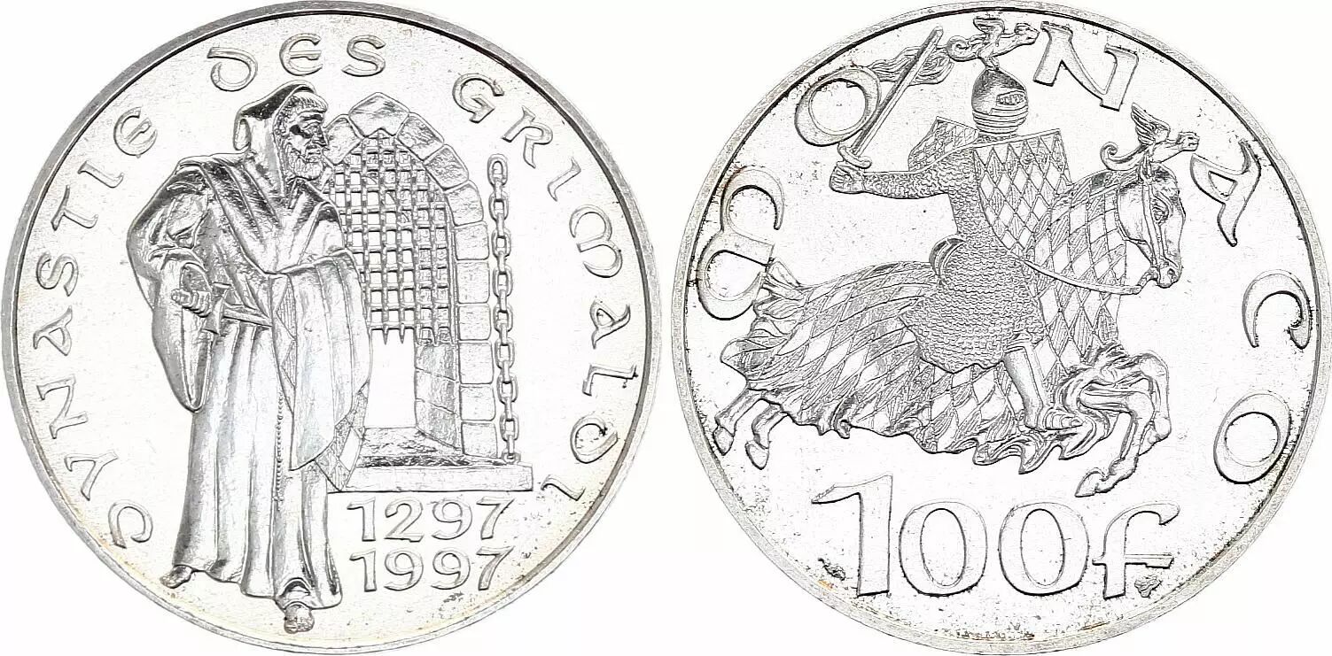 Accueil > Monnaies du monde > Monnaies d'Europe > Monaco > Monaco 100 Francs 700 ans de Règne des Grimaldi - 1997 - Argent