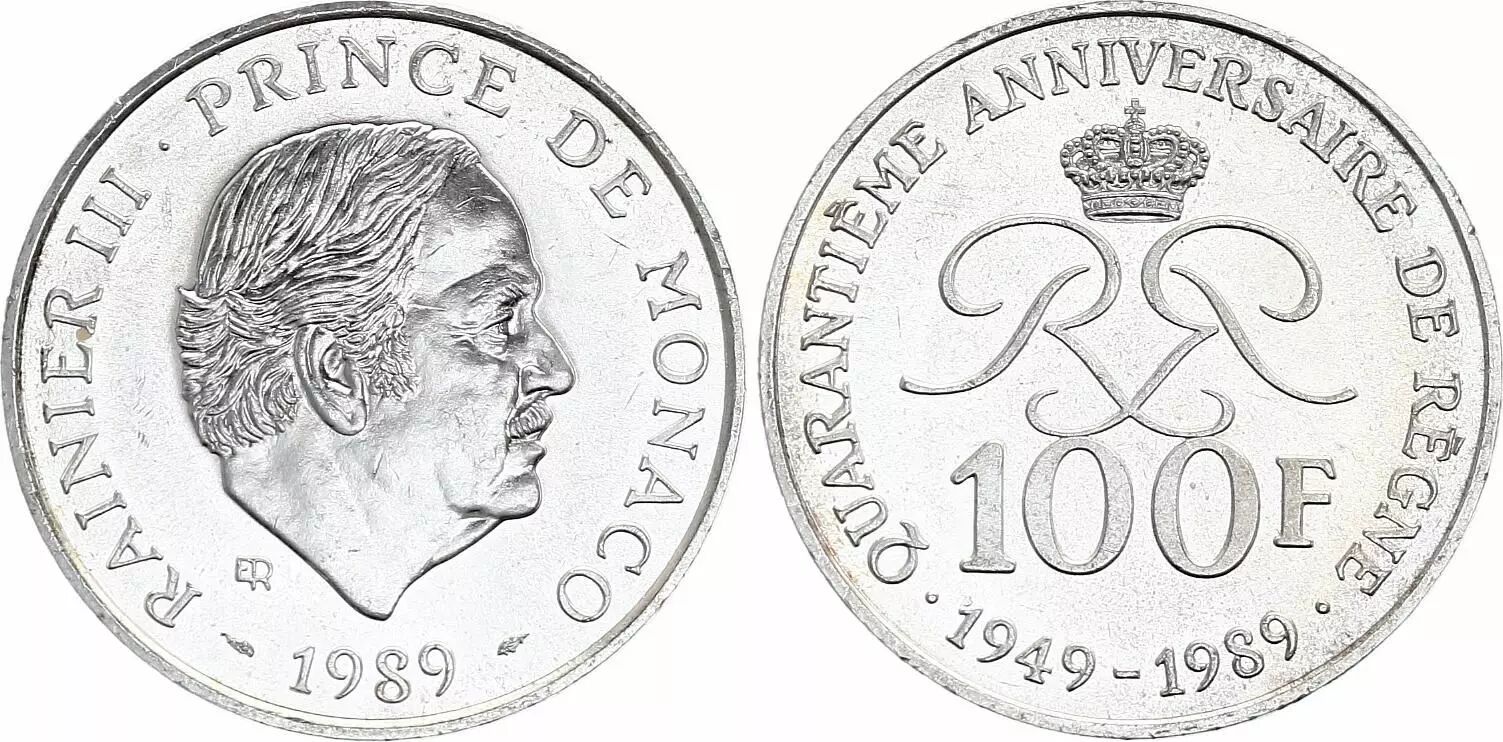 Coin Monaco 100 Francs Rainier III - 1989 - Silver