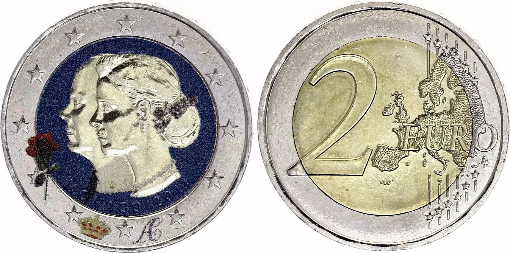 Home > > Monaco 2 Euros - Albert and Charlene - Colorised - 2011 - Bimetalic
