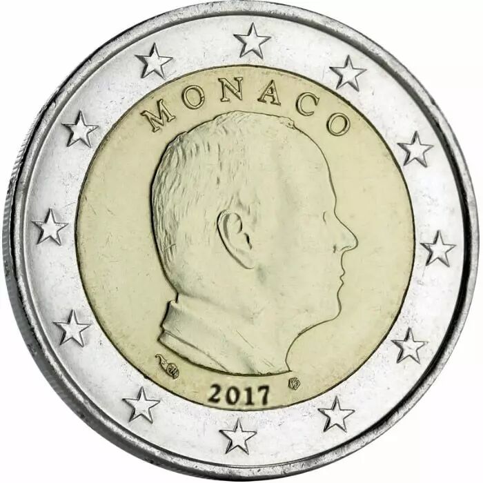 The Monaco commemorative 2 euro coin, issued in 2017, features a distinctive bi-metallic design. The center of the coin is made of nickel brass, while the outer ring is made of cupronickel. This gives the coin a weight of 8.5 grams.